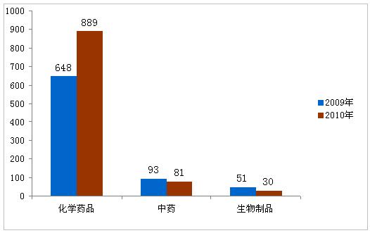 圖1:2009年與2010年批準(zhǔn)的藥品對比