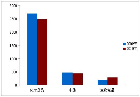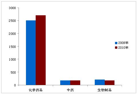 圖2:2009年與2010年批準(zhǔn)的境內(nèi)藥品對比
