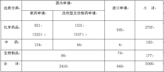 注:“其他”指按《藥品注冊管理辦法》(2005年版)分類申報的一、二、三、四類藥品。