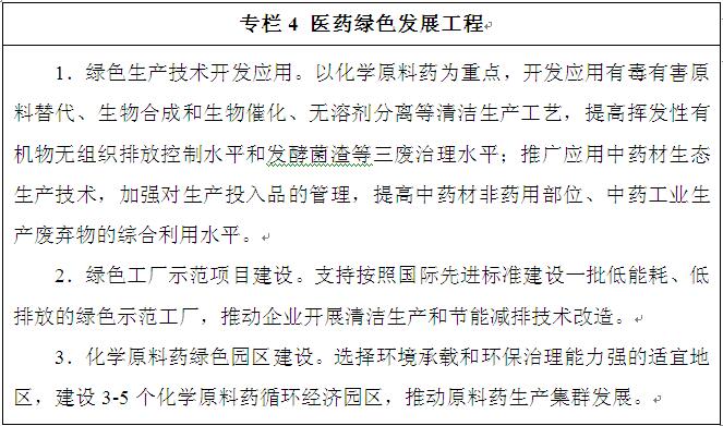 建設(shè)綠色工廠和綠色園區(qū)。以廠房集約化、生產(chǎn)潔凈化、廢物資源化、能源低碳化為目標(biāo),打造一批低排放綠色工廠。積極試點醫(yī)藥工業(yè)園區(qū)清潔生產(chǎn),建設(shè)高標(biāo)準(zhǔn)園區(qū),實現(xiàn)上下游配套、公用系統(tǒng)共享、資源綜合利用和污染物集中治理,在控制揮發(fā)性有機物(VOCs)排放和治理廢水等方面持續(xù)穩(wěn)定達到國家、地方標(biāo)準(zhǔn)或控制要求。