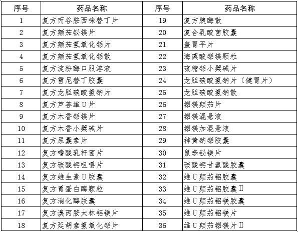 6.西藥部分第158號“緩解消化道不適癥狀的復方OTC制劑”包括的品種見下表: