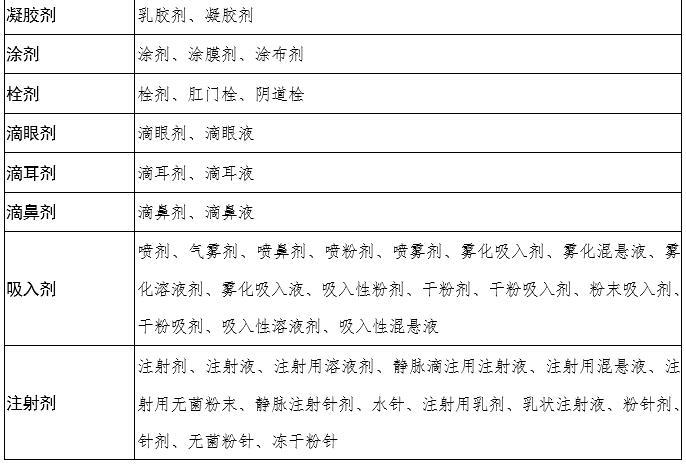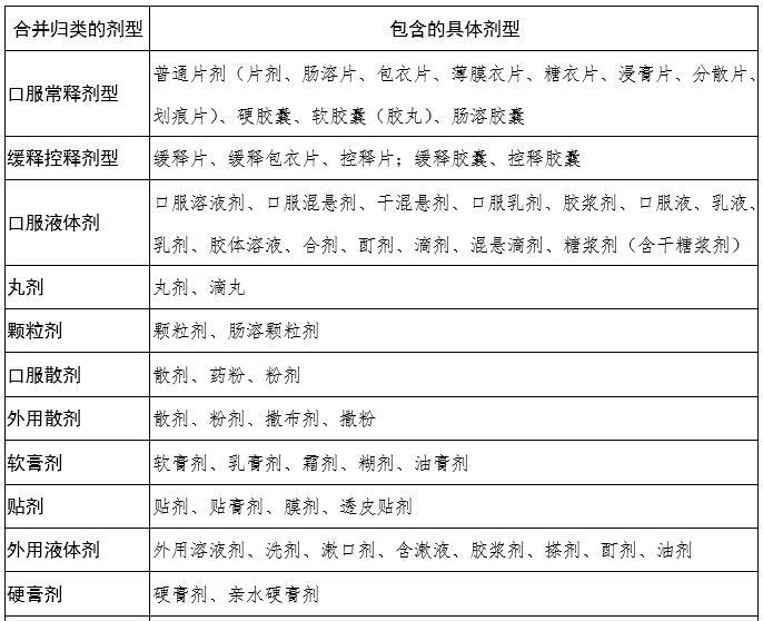 (六)西藥劑型在《中國藥典》“制劑通則”的基礎上合并歸類處理,未歸類的劑型以《藥品目錄》標注的為準。合并歸類的劑型所包含的具體劑型見下表: