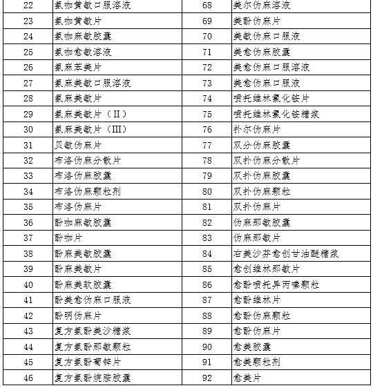 (五)除在“備注”一欄標有“◇”的藥品外,西藥名稱采用中文通用名,未包括命名中的鹽基、酸根部分,劑型單列。中成藥名稱采用中文通用名,劑型不單列。為使編排簡潔,在甲乙分類、給藥途徑、備注相同的情況下,同一通用名稱下的不同劑型并列,其先后次序無特別含義。